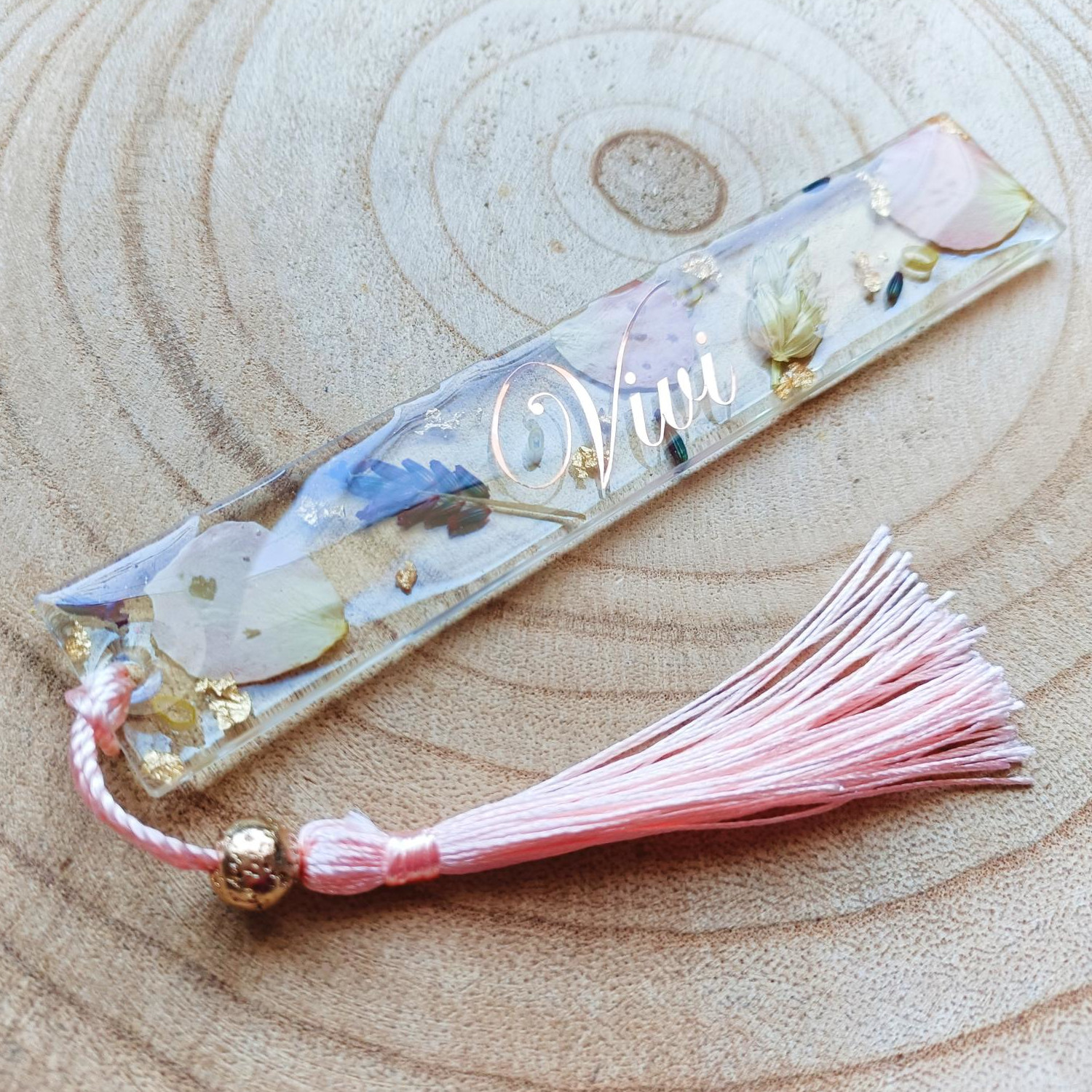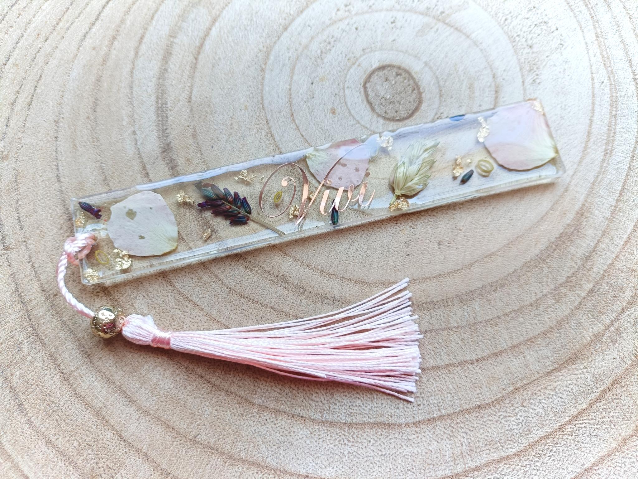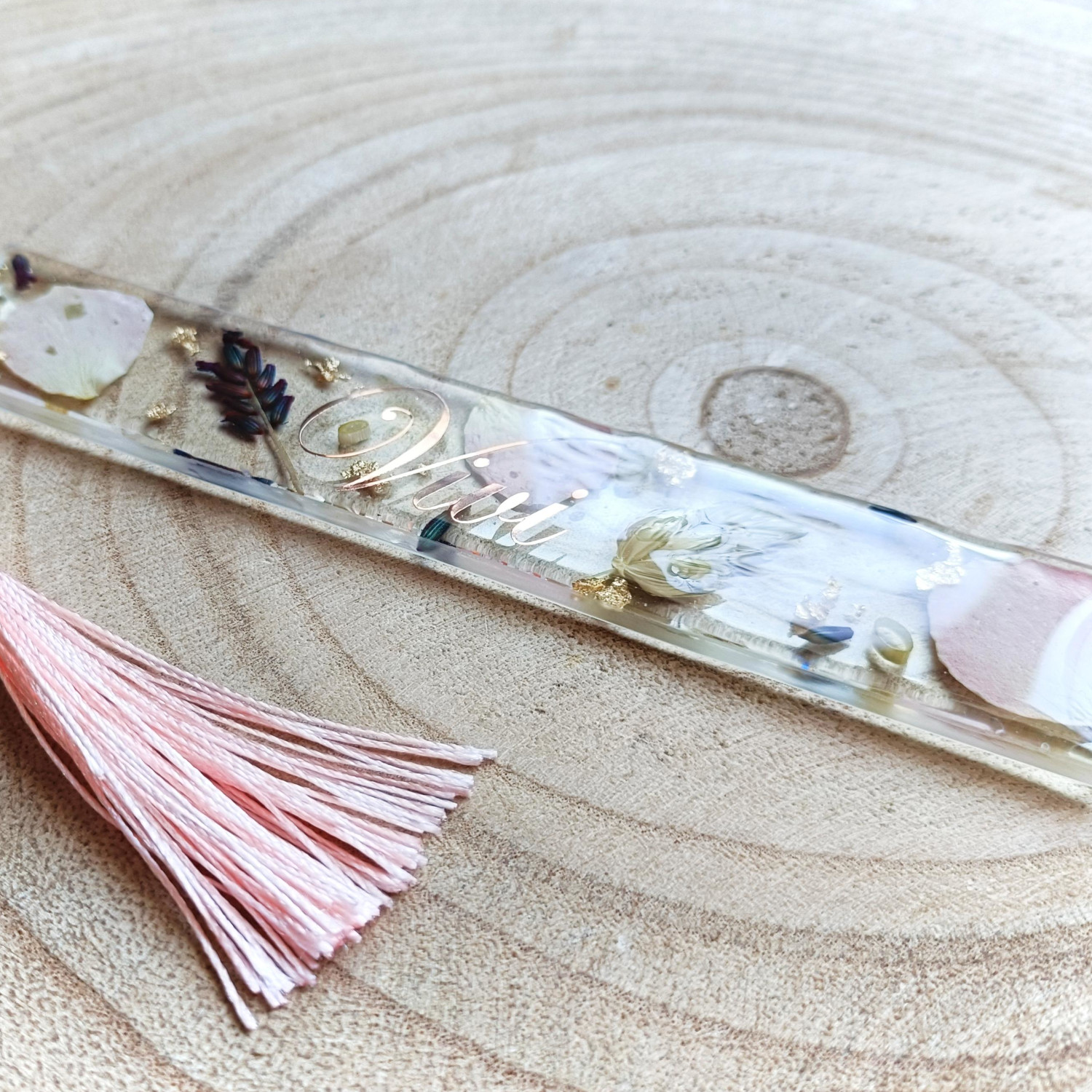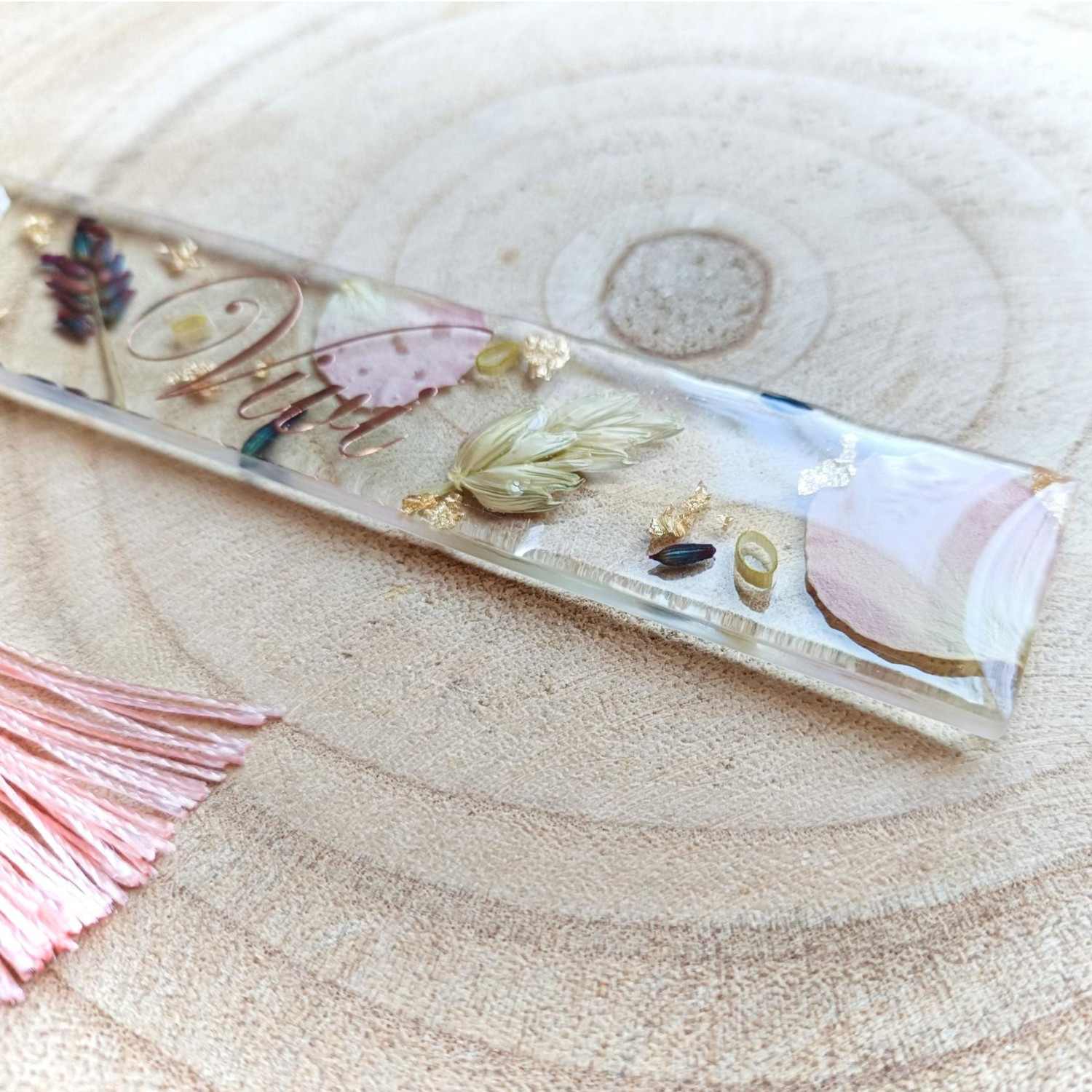 Marque-page en résine sur-mesure, réalisation sur demande pour immortaliser un évènement, un moment de vie ou tout simplement pour un cadeau unique.